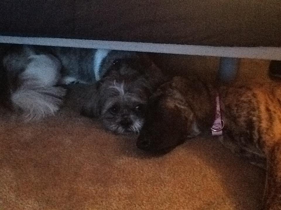 Tiberious was mostly indifferent. Willow hated her (which was expected). She asserted her dominance fairly quickly– Darla was terrified. Actually, Darla is STILL terrified of Willow. It’s actually hilarious to watch any dog submit to a cat, but when it’s a dog the size of Darla, it’s mind blowing.