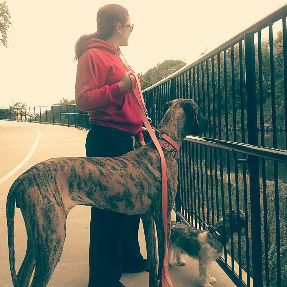 Growing up, one of my favorite movies was 101 Dalmatians (big surprise, huh?). My favorite scene was the Twilight Bark– I loved the big Great Dane and his little friend, running around him. Cartoon Great Danes were always so cute and sweet…and that’s where my fascination with the giant dog stopped. I admired and thought the breed was beautiful, but I never considered owning one myself. Some of my friends had collies, retrievers, labs, big breed mixes. I always thought it would be fun to roll around with them, but never actually did.