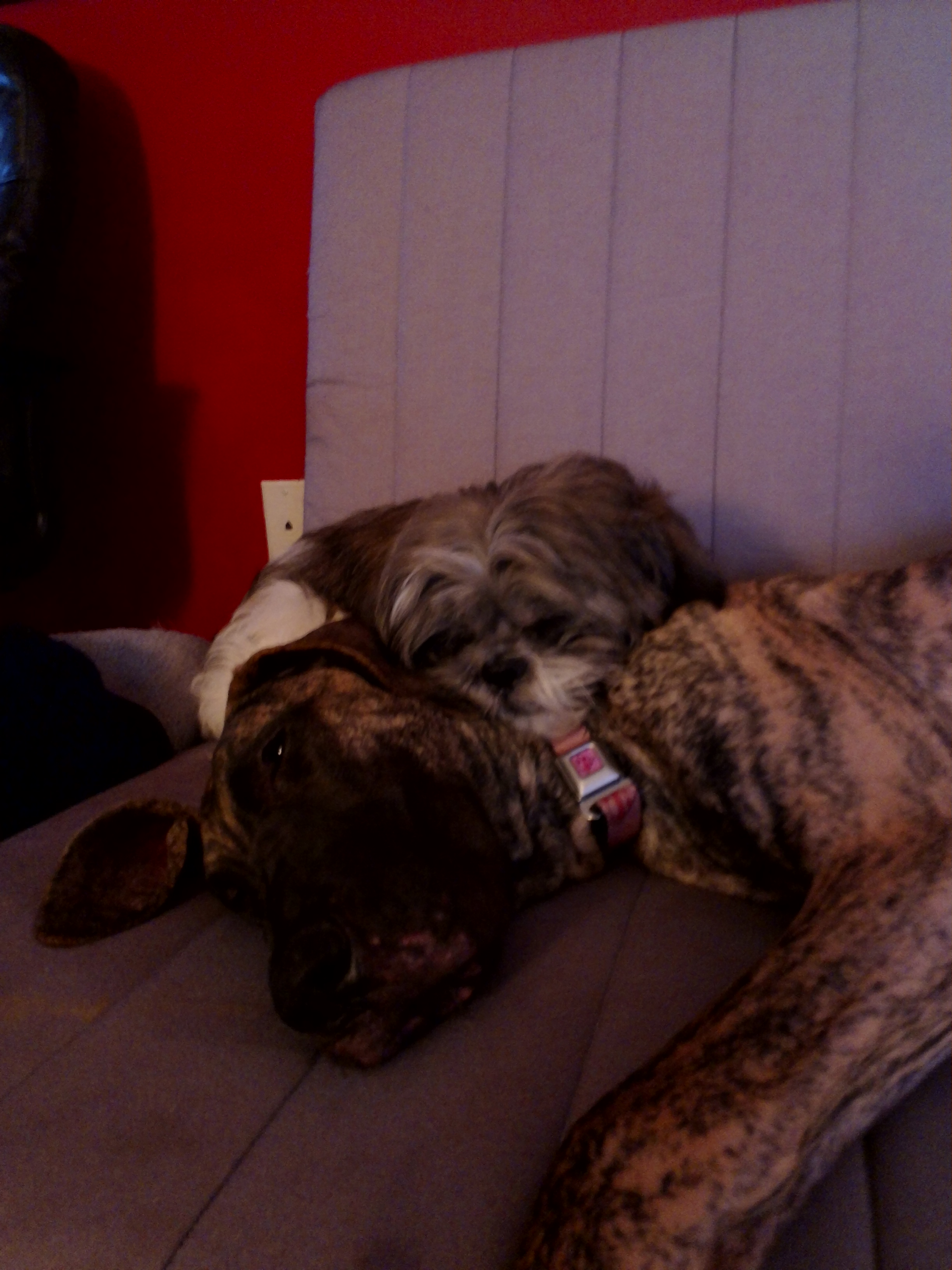 It started with something simple: the bed. As a puppy, the boyfriend let Darla sleep on the bed. Which is fine when your dog weighs about 33 lbs. But when she hit 85, it began to be a problem. At 110…well, you get the idea. We have a queen size bed, and I’m small, but COME ON. Around this time, not only did she grow massively, but she began to push boundaries, like a preteen wanting a cell phone. Again, when a 16 pound dog pushes, one just worries about the little fur ball with a Napoleon complex (or so I naively thought); when a 110 pound dog decides she isn’t potty trained anymore, it is a much bigger problem. The problem was, it wasn’t just her. Thor began to notice Darla’s…rebellion and seemed encouraged by it. It was happening, just like the Revolution was followed by a French one, a Dane was emulated by a shih tzu.