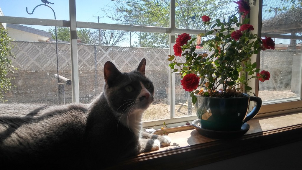 The day I met Willow, Leo and I had gone to the El Paso Humane Society, looking for a kitten to adopt. As we walked though the cat area, a little paw reached out and grabbed Leo. That’s all it took; a little dexterous paw peeked through the bars of a cage. Leo was in love from the start. I was a little apprehensive. While she had been cute and everything, I had wanted a kitten. But she had been there almost a year and the workers there were so happy she was getting adopted; it was hard not to agree.