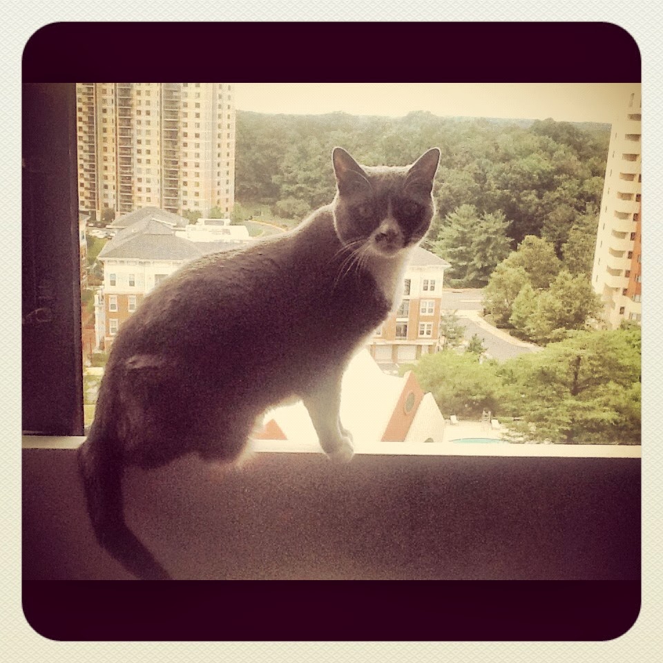 First off, she had kennel cough and was too skinny. So off to the vet she went, coming out with medicine and calorie powder. She was literally like, 9 lbs. Who wins: new owner and sister (armed with towel and aforementioned medication) or the cat?