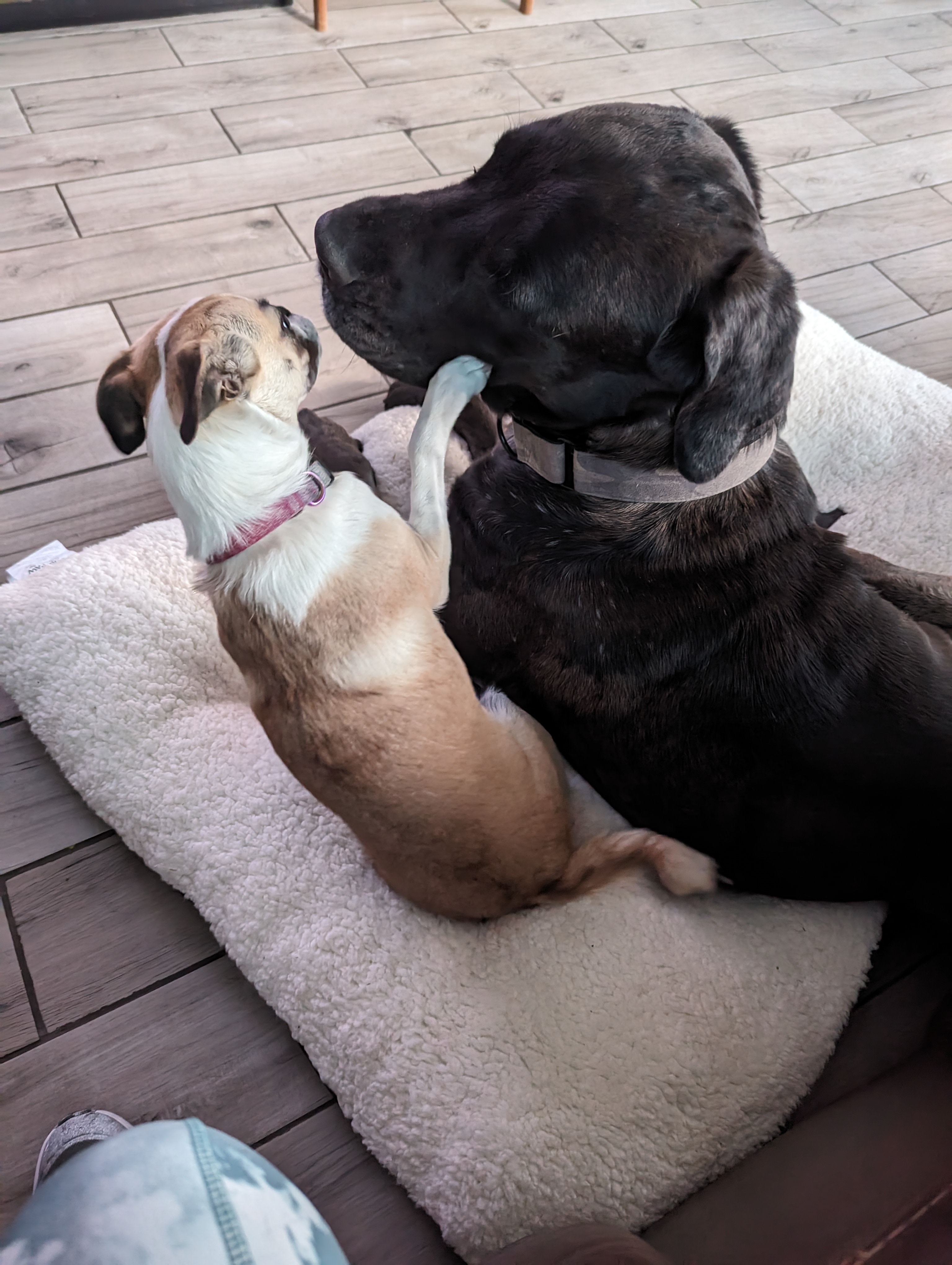 This blog post is a good introduction to pack theory. As with everything, there are many schools of thought when it comes to the pros and cons of this particular behavioral understanding. Personally, I found that the biggest misunderstanding is the idea of obedience through fear or force. The reality is that dogs, like children, crave consistency. The idea is that you, as the pack leader, sets out behavior and hierarchy expectations to the other members. This allows each member to understand what is expected of them, as well as finding their own unique role within the pack structure. In my experience, by enforcing expectations and rules, each unique personality in your little pack ends up finding their niche within the group. Knowing what is expected reduces anxiety and allows them to thrive within that role.